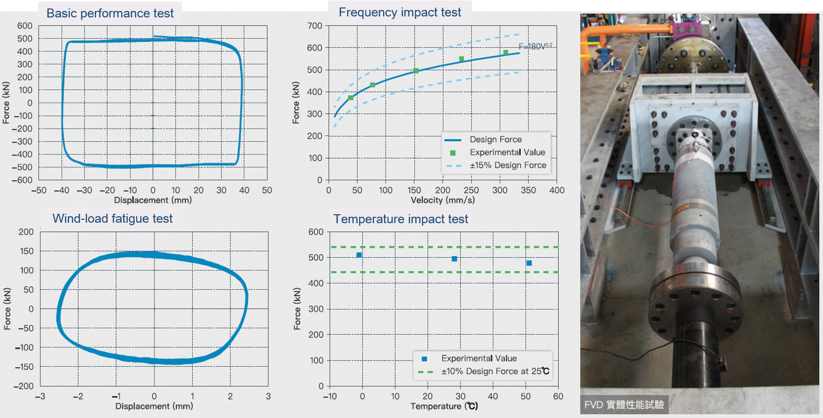 Fluid viscous damper (FVD) products all passed TAF laboratory's object and performance assurance test, exceeding both Taiwanese and international specifications and demonstrating designing excellence.
